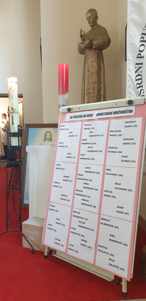 Sveto misno slavlje za sve žrtve u 17 sati u crkvi sv. Mateja predvodio je župnik Plitvičkih jezera vlč. Josip Tomljanović. U koncelebraciji su sudjelovali domaći župnik preč. Luka Blažević, svećenik u miru vlč. Zlatko Sušić i gospićki dekan vlč. Herbert Berisha.