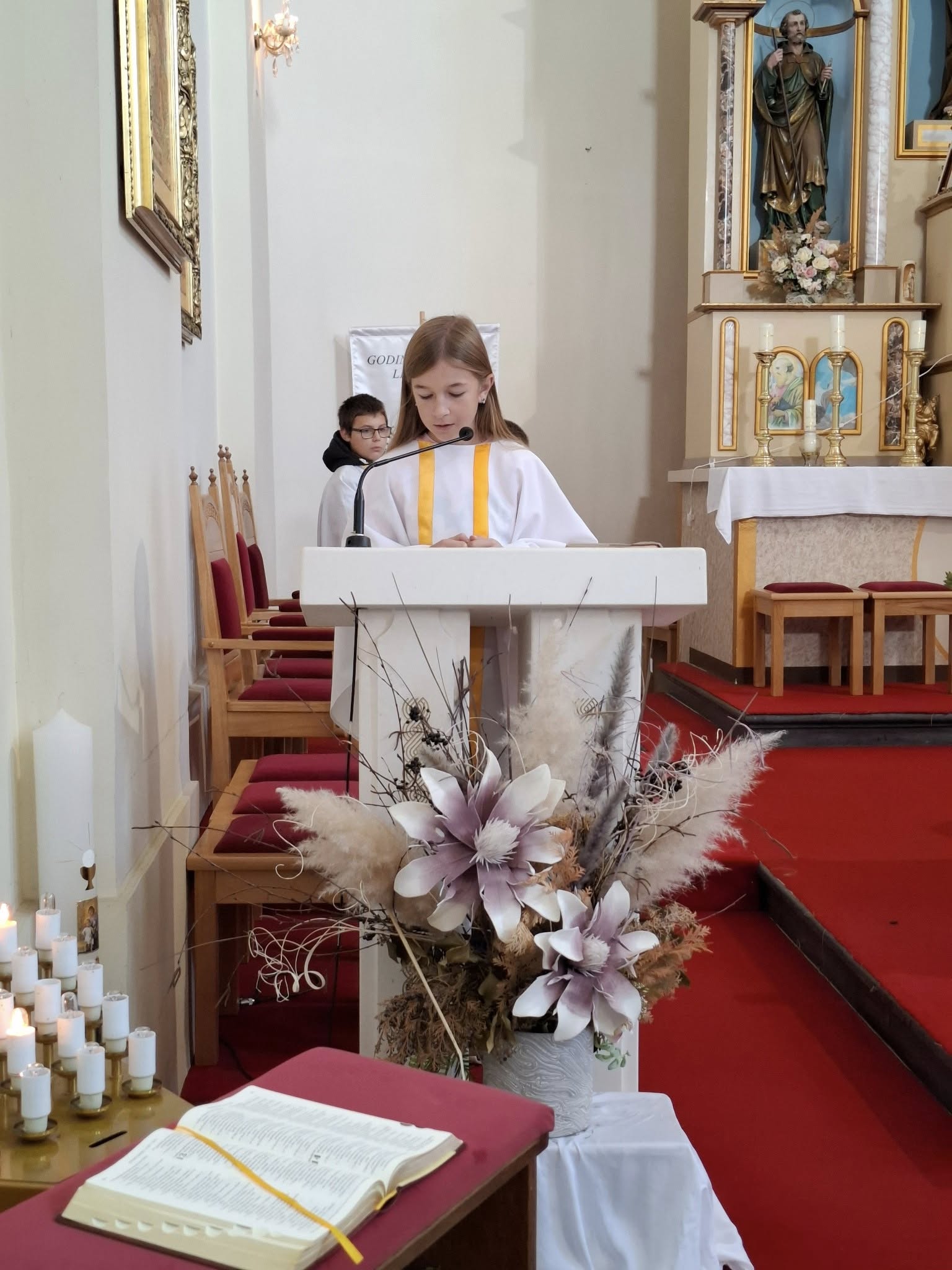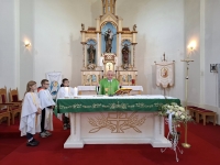 Na 28. nedjelju kroz godinu, koju je HBK proglasila kao Dan zahvalnosti za Božja dobročinstva, mise u 9 i 11 sati predvodio je župnik preč. Luka Blažević, a u 11 sati, koncelebrirao je i don Ivo Borić koji je navjiestio Evanđelje i propovijedao.