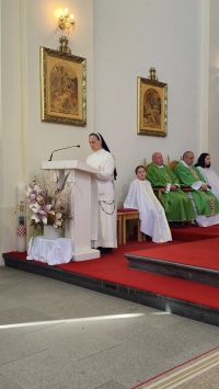 U propovijedi je citirao papu Lava sa Jubileja posvećenog života: "Tamo, u dubini duše, svatko može otkriti vatru želje za Bogom koja gori i nikada se ne gasi. Ovo naše mukotrpno vrijeme traži od vas da uđete u otajstvo Kristova zagovora za cijelo čovječanstvo, pristajući 'staviti se u sredinu' između stvorenja, krhkoga i ugroženoga zlom, i milosrdnoga Oca.“ U 11 sati zajedno s narodom su slavile i sestre dominikanke, koje su animirale i pjevanje, a one su u pastoralnom centru ovaj vikend imale konferenciju "Moja kongregacija i ja".