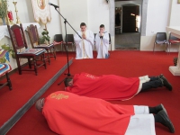 Obredi Velikog petka podijeljeni su u tri dijela: služba riječi, klanjanje križu i sveta pričest. Na početku svi obavljaju pokajnički čin u šutnji, klečeći, a svećenici se prostiru u najdubljoj poniznosti pred oltar. Tada priznajemo Bogu sve svoje osobne grijehe, ali i grijehe čitavoga svijeta zbog kojih je Krist podnio muku i smrt na križu. Priznavajući grijehe, izražavamo svoju spremnost na žrtvu pokajnicu, ali i duboku i čvrstu nadu koju crpimo iz Božje riječi. Zato nakon zborne molitve i čitanja biblijskih tekstova sluša se izvještaj o muci Isusa Krista kako ju je zapisao evanđelista Ivan.