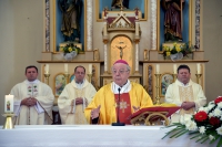 Svečanu svetu misu u 11 sati u kojoj je podijelio sakrament potvrde predvodio je biskup u miru mons. dr. Mile Bogović. U koncelebraciji su bili i sljedeći svećenici: vlč. Pero Jurčević (župnik u Kosinju), vlč. Ivan Blaževac (vojni kapelan u Gospiću), vlč. Mario Vazgeč (župnik u Gospiću), vlč. Pejo Ivkić (župnik u Brinju) i domaći župnik preč. Luka Blažević.