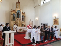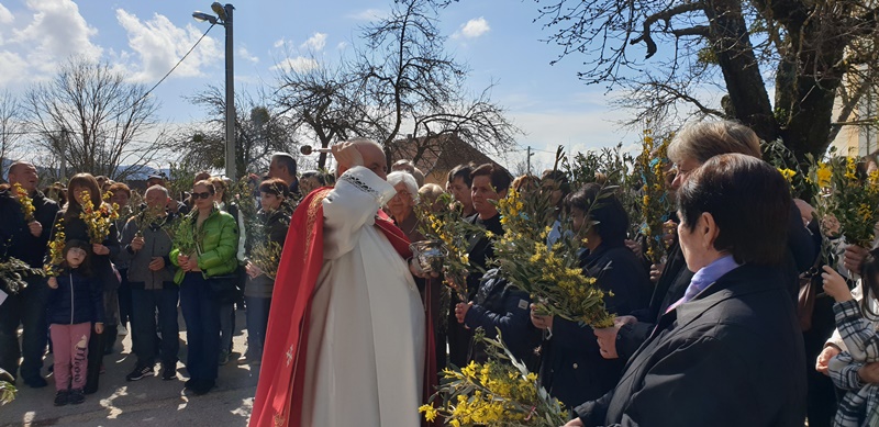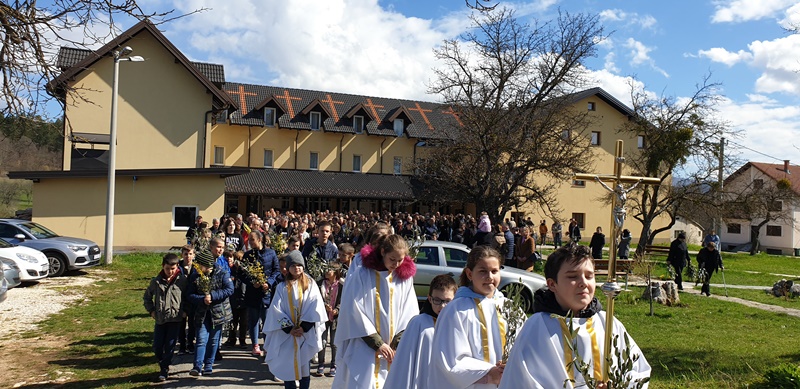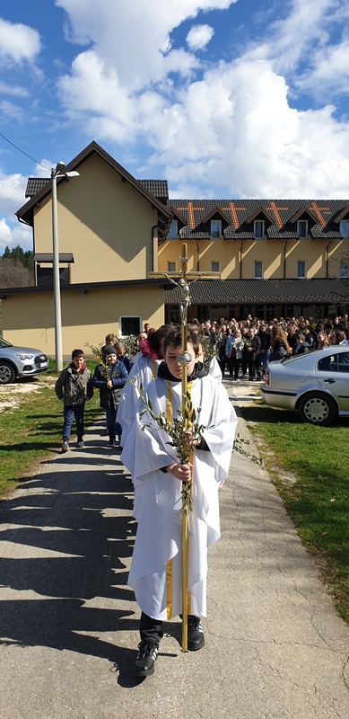 Prije mise u 11,00 sati vjernici su se okupili ispred župnog dvora te su nakon blagoslova grančica u povorci krenuli u crkvu. Svetu misu u 11,00 sati predvodio je župnik preč. Luka Blažević.