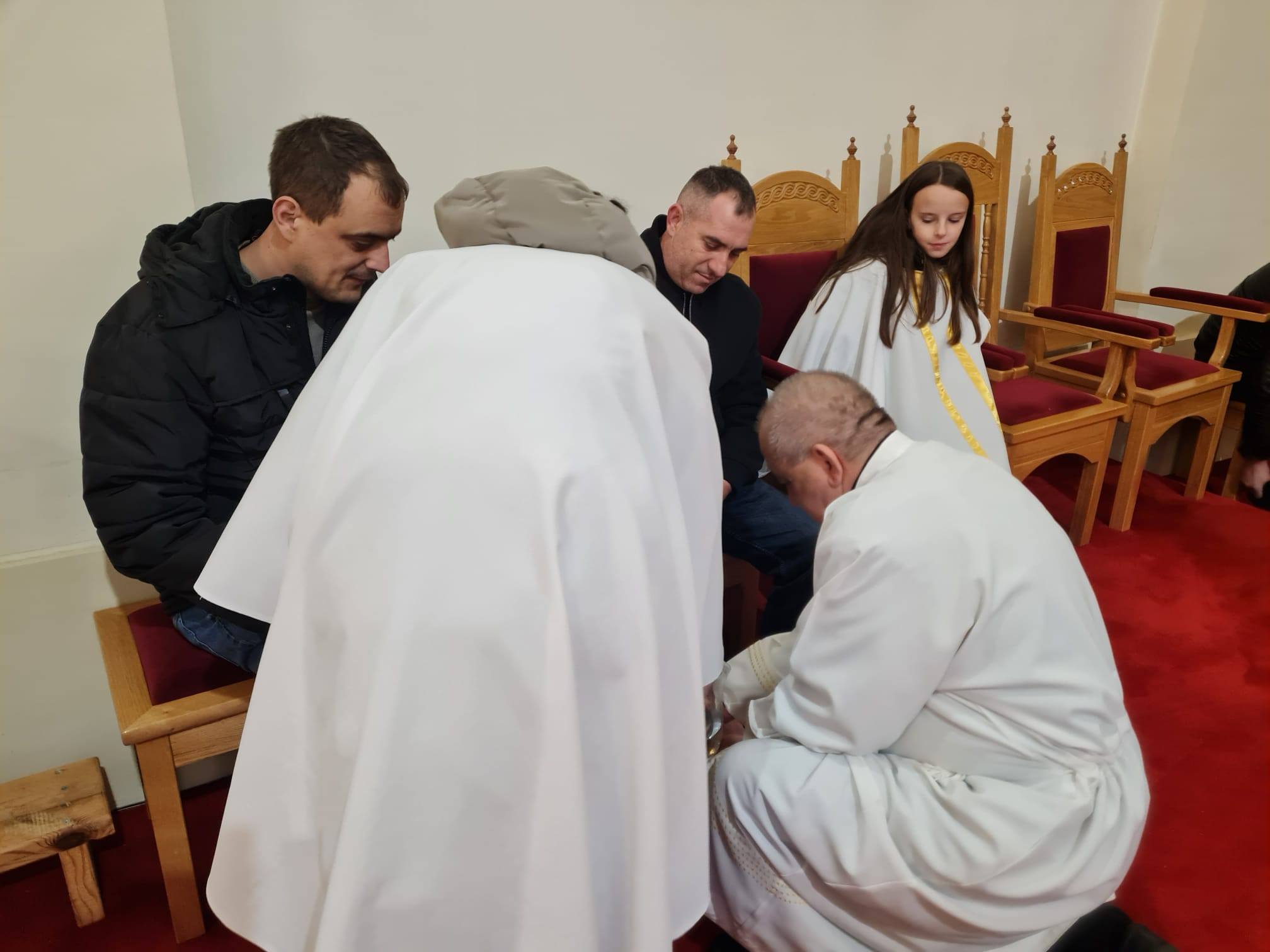 Za vrijeme svete mise župnik je apostolima simbolično oprao noge u znak služenja.